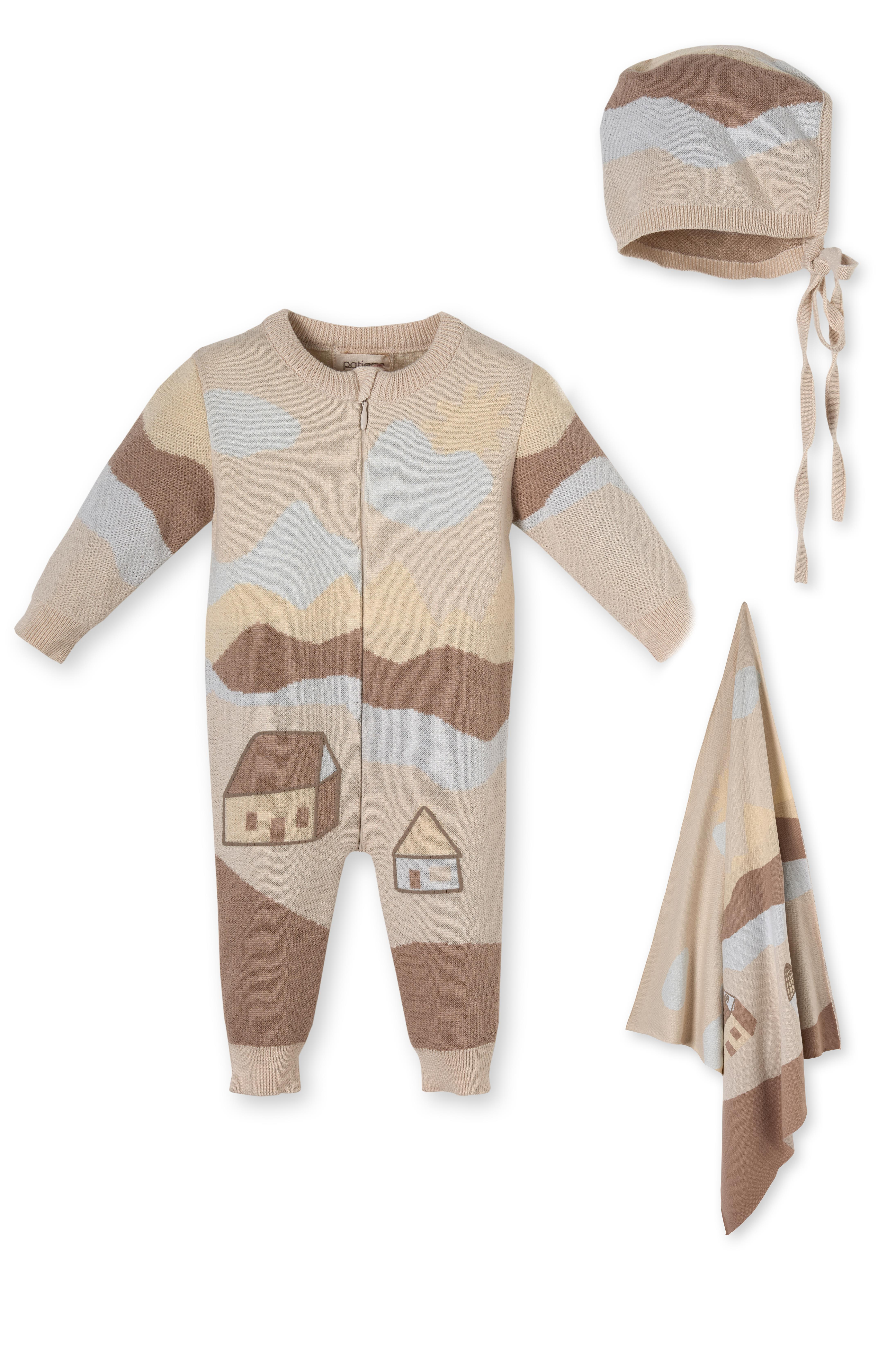 Bu %100 organik pamuk tulum takımı, yenidoğan bebeklerin ilk günlerinden itibaren kullanıma uygundur. Setin içerdiği triko battaniye ve triko bere ile tamamlayıcı bir deneyim sunar. Pamuk bebek uyku tulumu özelliğiyle gece ve gündüz kullanımı için ideal olan bu takım, bebeğinizin cilt sağlığını korurken rahat hareket etmesine de olanak tanır.