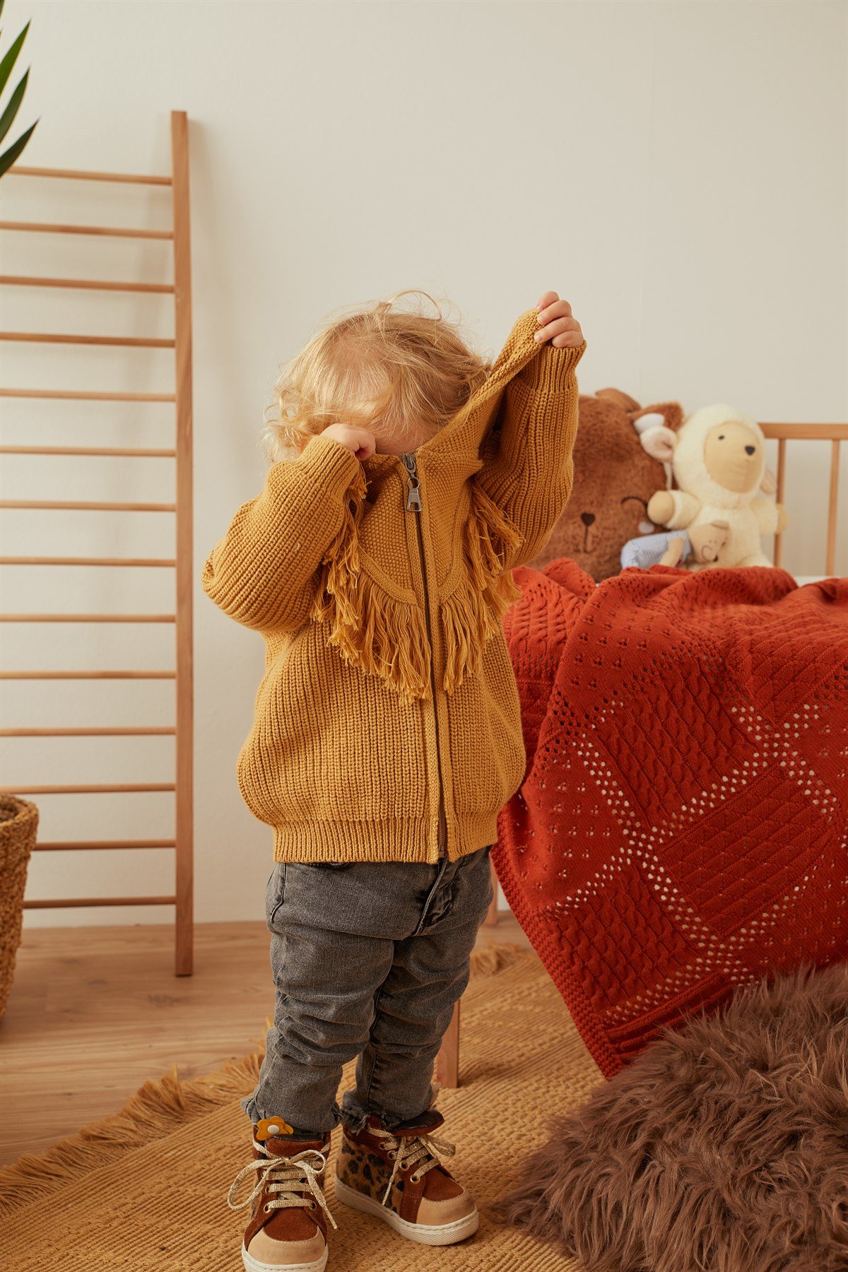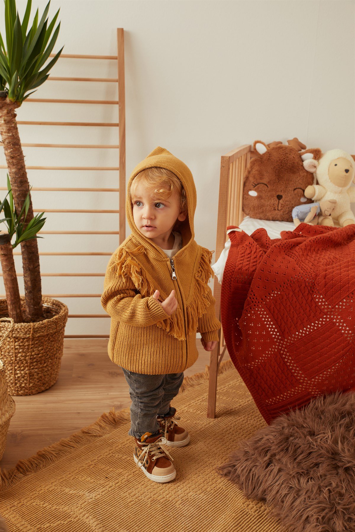 Mustard Organic Cotton Baby Knit Cardigan with Hooded