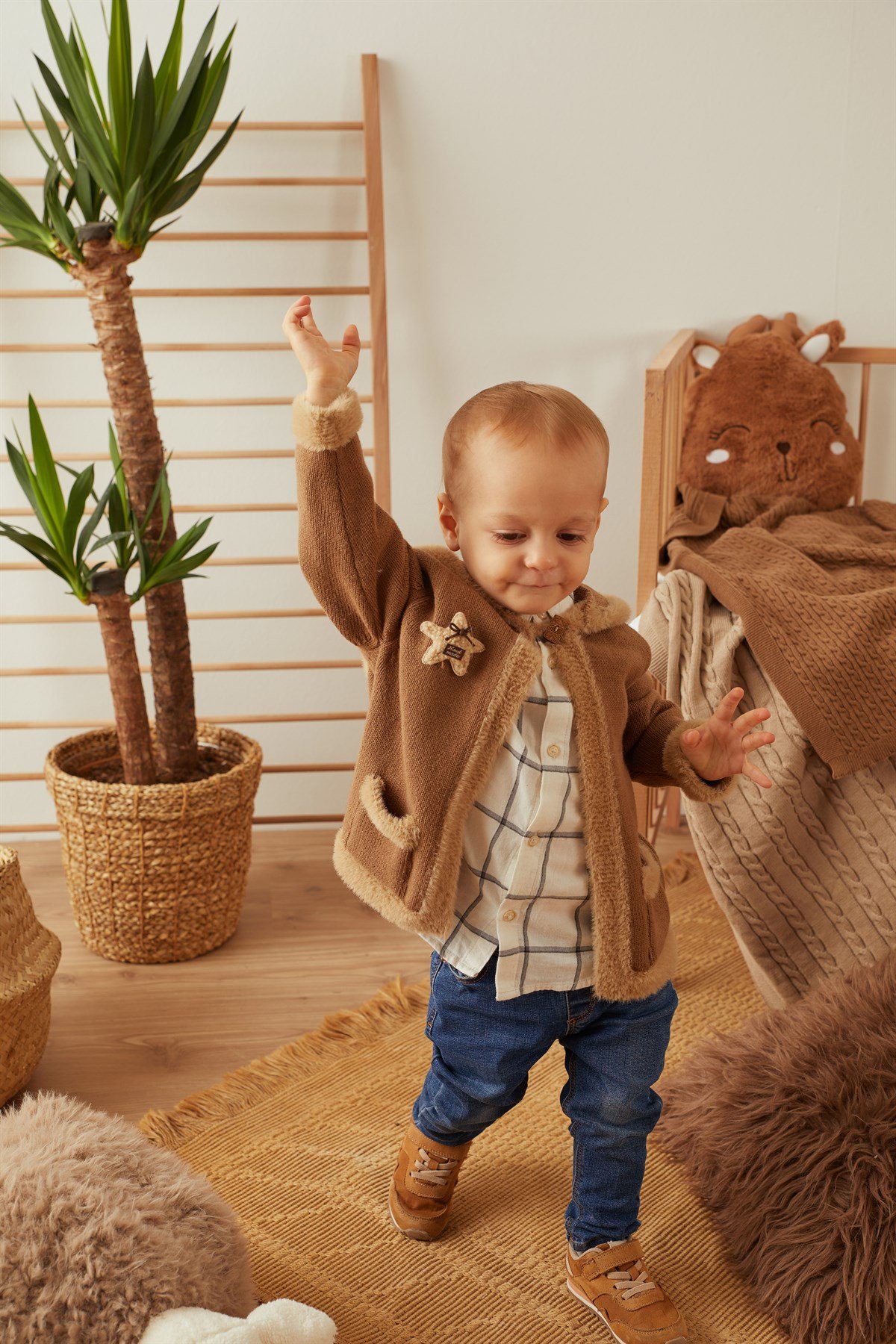 Кофейный цвет плюшевый детский кардиган с капюшоном из органического хлопка